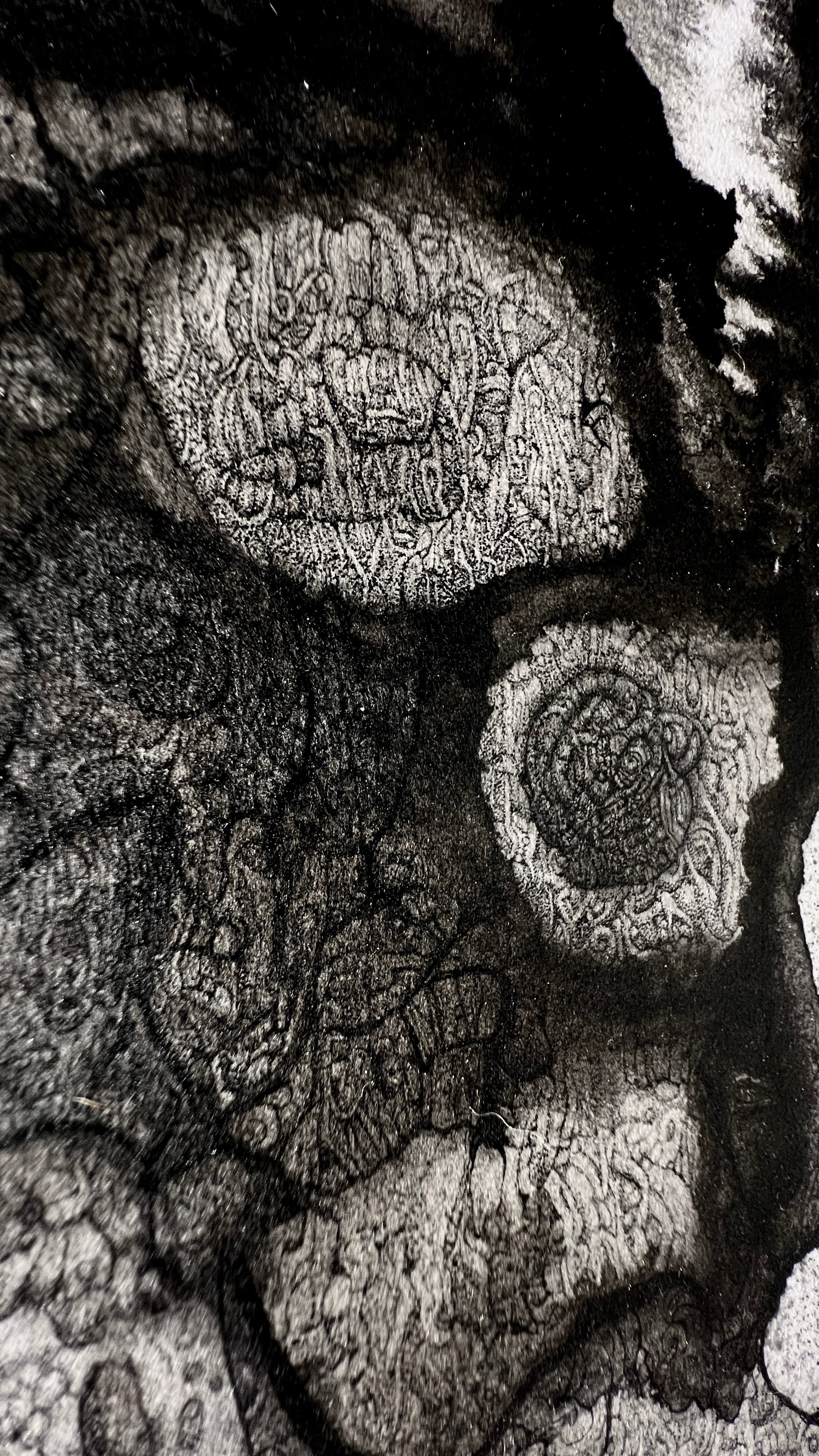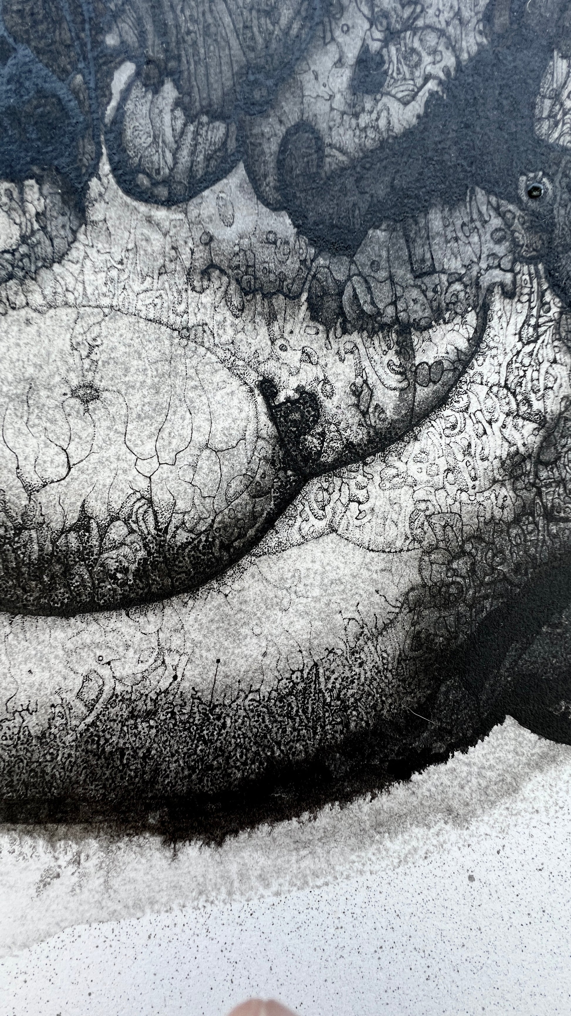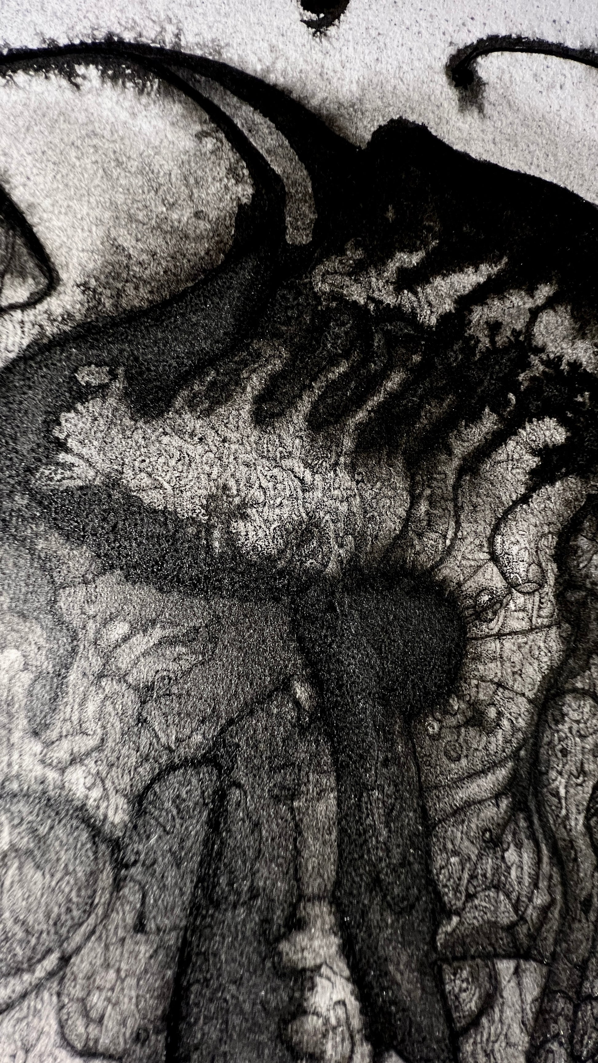 Abstract ink drawing on 15x20 cotton coldpress board.