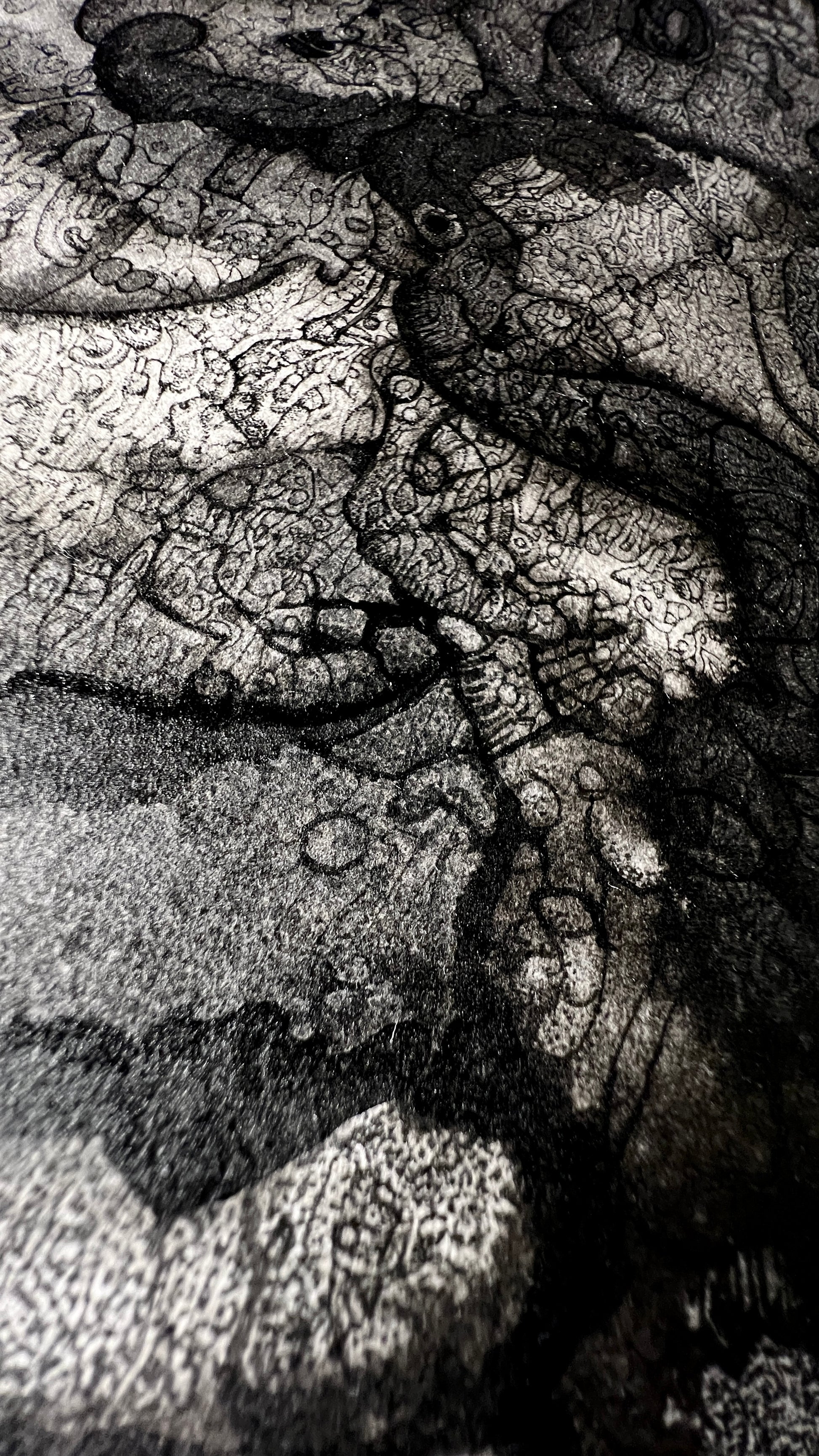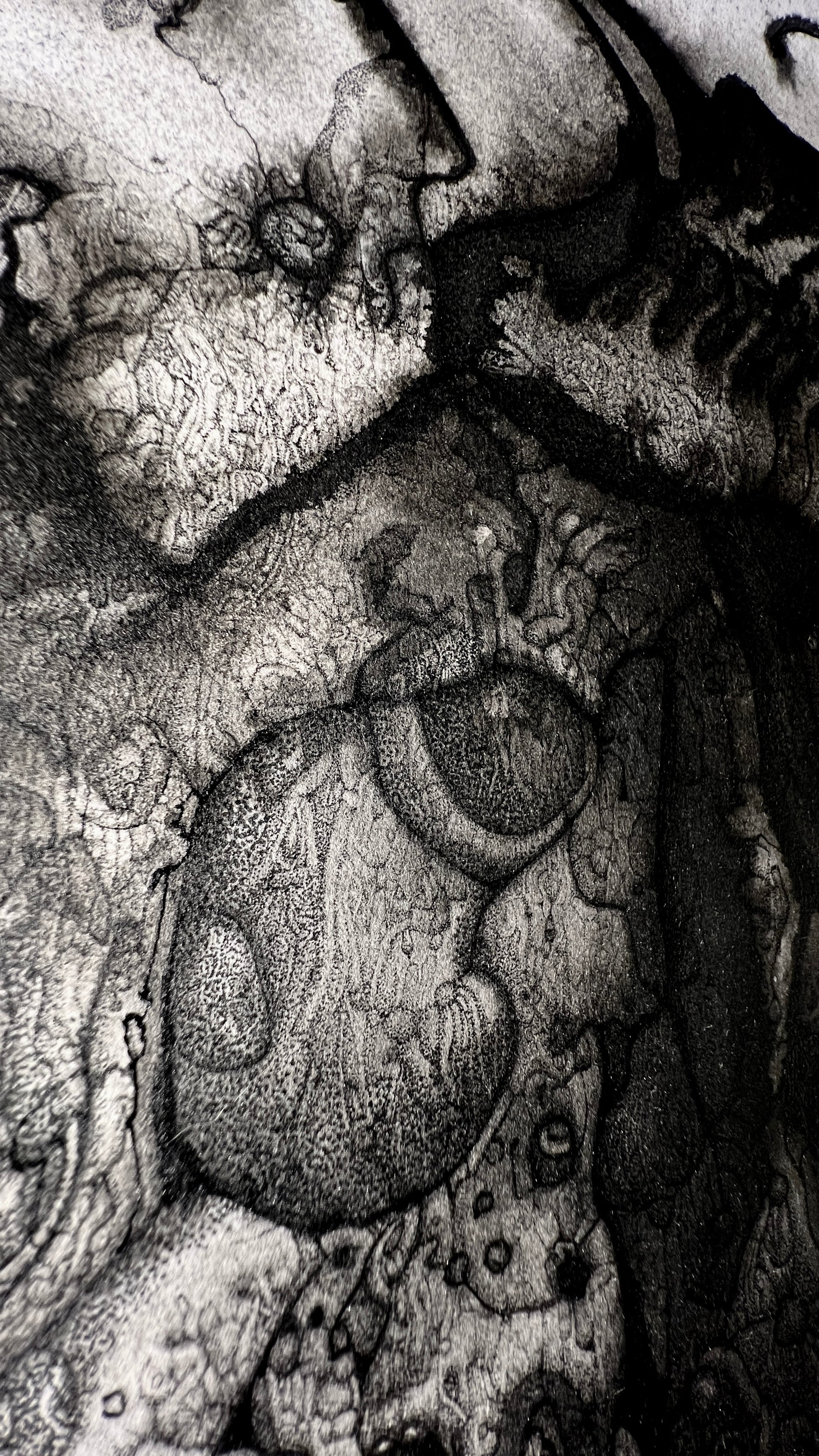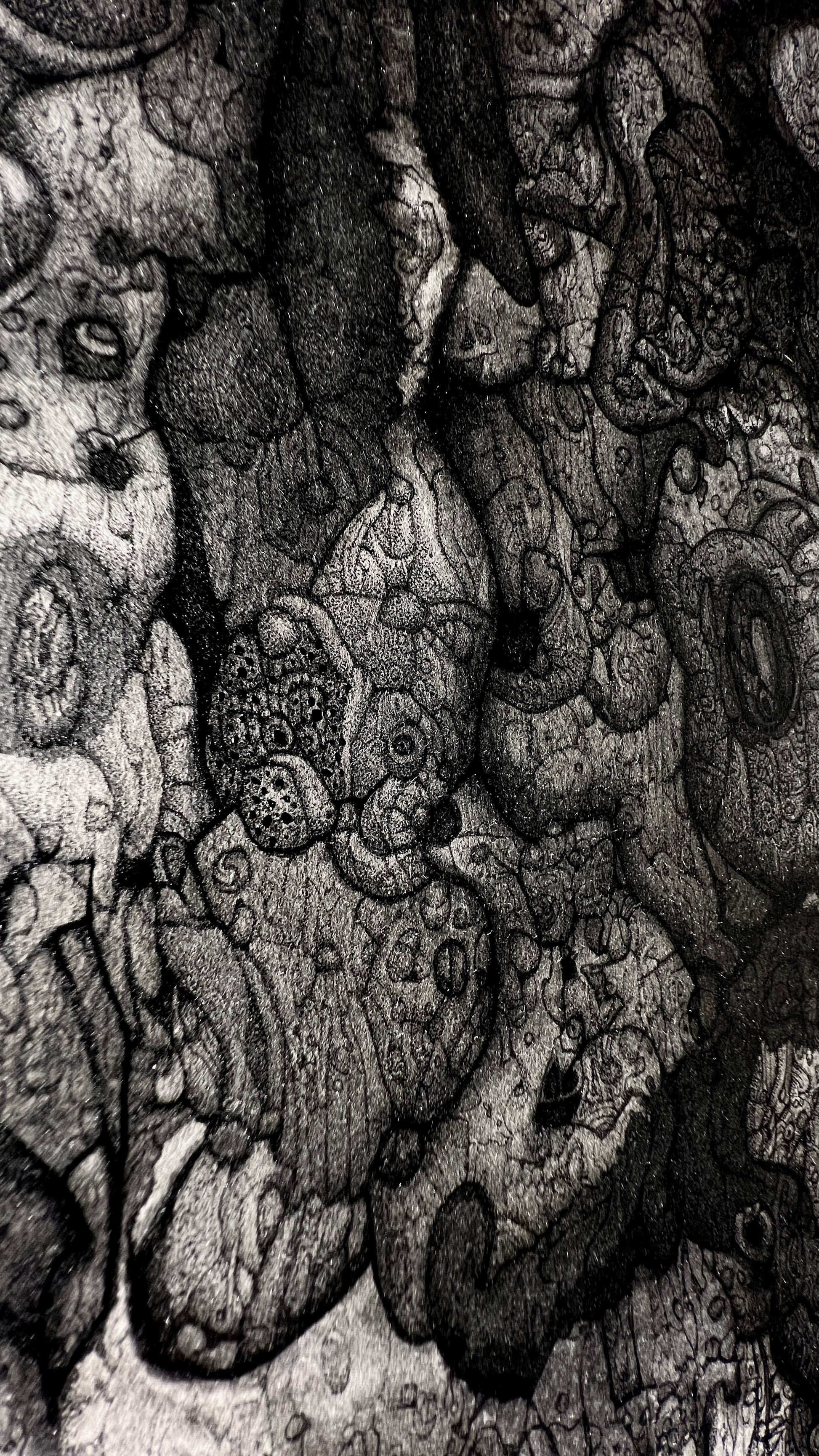 Abstract ink drawing on 15x20 cotton coldpress board.